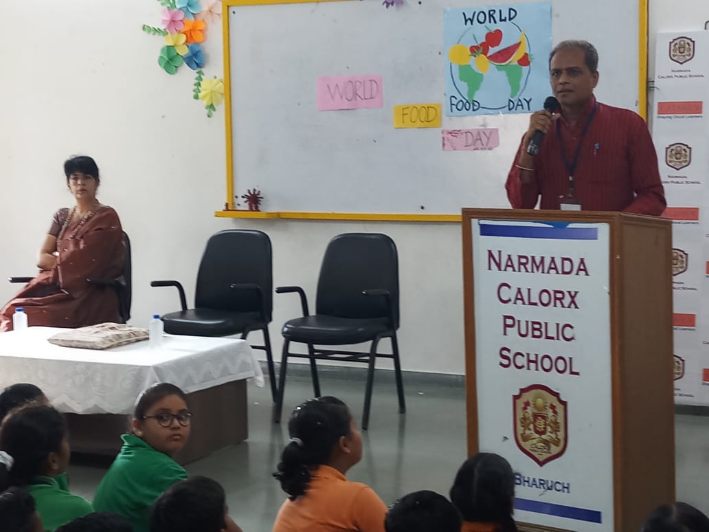 વિશ્વ ખોરાક દિવસ નિમિત્તે નર્મદા પબ્લિક કેલરોક્ષ સ્કૂલ, ચાવજ ખાતે ખોરાક નો વ્યય થતો અટકાવવા માટે અને વિદ્યાર્થીઓમાં ખોરાક નું મહત્વ સમજાય તે માટે એક વ્યાખ્યાન રાખવામાં આવ્યું,જેમાં મુખ્ય વક્તા તરીકે સંસ્કૃતિ સમાજ સેવા સંસ્થાન ટ્રસ્ટ ના સ્થાપક પ્રકાશચંદ્ર પટેલ ને આમંત્રણ આપવામાં આવ્યું. પ્રકાશચંદ્ર પટેલ દ્વારા બાળકો ને સંસ્થાની માહિતી આપતા જણાવ્યું કે સંસ્કૃતિ સમાજ સેવા સંસ્થાન ટ્રસ્ટ છેલ્લા કેટલાક સમયથી અન્નદાન માટે ચોવીસ કલાક ભરૂચ માં કાર્યરત છે, સંસ્થા ના સભ્યો દ્વારા આ વર્ષ દરમિયાન લગ્ન પ્રસંગ, જન્મ દિવસ, લગ્નતિથી, મુંડન સંસ્કાર કે સમાજ માં થતા કોઈપણ શુભપ્રસંગો માં વધતા અન્ન નો બગાડ થતો અટકાવવા અને તેને જરૂરીયાતમંદ અને ભુખ્યા લોકો સુધી અન્નને પહોંચવા અન્નદાન મહાદાન કરી એક ઝુંબેશ ચલાવી. જેમાં છેલ્લા આઠ મહિનામાંજ દસ હજારથી વધુ લોકો ને આવું દાન માં મળેલુ અન્ન જરૂરીયાતમંદ અને ભુખ્યા લોકો સુધી પહોંચવામાં આવ્યું . આ ઝુંબેશને સારો પ્રતિસાદ મળ્યો છે અને ભરૂચ ખાતે પ્રસંગોમાં વધેલા અન્નનો એક દાણો પણ ન બગડે તે માટે સંસ્થા સંકલ્પિત થઇ ને કામ કરે છે.યુનાઈટેડ નેશન ના એક રીપોર્ટ પ્રમાણે દુનિયા માં ૮૨૧ મિલીયન લોકો ને તંદુરસ્ત જીવન જીવવા માટે પુરતો ખોરાક મળતો નથી.૧૫૦ મિલીયન બાળકો અપુરતા ખોરાક ને લીધે તેઓ કુપોષણ નો શિકાર બને છે.એક સર્વે પ્રમાણે ભારતમાં એક દિવસ માં ૩૦૦૦ બાળકો ખોરાક ન મળવાથી મૃત્યુ પામે છે અને ૧૯ કરોડ લોકો ને રાત્રે ભુખ્યા પેટે સુવુ પડે છે. તેની સામે ૨૧૦ મિલીયન ટન ધઉ વર્ષે બગડી જાય છે, તેની કિંમત ૫૦,૦૦૦ કરોડ રૂપિયા થાય છે. દિવસના ૨૪૪ કરોડ રૂપિયા અન્નના બગાડવાથી ભારત દેશ ને નુકશાન થાય છે. તેથી આપણે ખોરાક નું મહત્વ સમજવું જોઇએ અને અન્ન નો બગાડ કરવો ન જોઈએ. બાળકો ને ખોરાક ન બગાડવા માટે પ્રતિજ્ઞા લેવડાવવામાં આવી અને વધેલા અન્ન ને જરૂરીયાતમંદ અને ભુખ્યા લોકો સુધી પહોંચવામાં આવે તેમ જણાવ્યું.
