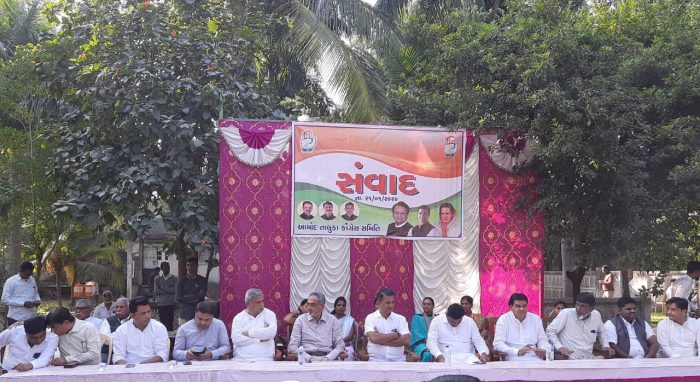 આમોદમાં આજરોજ ગુજરાત વિધાનસભાન વિપક્ષી નેતા પરેશ ધાનાણીના અધ્યક્ષ સ્થાને સંવાદ કાર્યક્રમ યોજાયો હતો. જેમાં કોંગ્રેસનાં હોદ્દેદારો અને કાર્યકરો મોટી સંખ્યામાં ઉપસ્થિત રહ્યા હતા. વિપક્ષી નેતાના અધ્યક્ષ સ્થાને યોજયેલા કાર્યક્રમમાં લોકોએ વિવિધ પ્રશ્નોની લેખિત રજુઆત કરી હતી.જેમાં નહેર વિભાગને લગતા પ્રશ્નોની રજુઆત કરવામાં આવી હતી અને સરકાર દ્વારા કરોડો રૂપિયાની પાઇપ નાખી હોવા છતાં આમોદના પશ્ચિમ વિસ્તારમાં હજુ સુધી નહેરોમાં પાણી પહોંચ્યું નથી. તેમજ કપાસ,મગ, તુવેરની આમોદ ખાતે ખરીદ કેન્દ્ર શરૂ કરવાની માંગ કરી હતી. આ ઉપરાંત આમોદ નગર વેપારી એસોસિએશનને પણ આમોદ નગરમાં ઘર વપરાશ માટે ગેસલાઈનની ફાળવણી કરવા રજુઆત કરી હતી. તેમજ આમોદનું એસ.ટી ડેપો કાર્યરત કરવા તેમજ આમોદ- ભરૂચ ઇન્ટરસિટી બસની માંગણી કરી હતી. આમોદમાં સિવિલ કોર્ટ છે જેમાં સેશન્સ કોર્ટ આમોદમાં ફાળવવામાં આવે તો આમોદ, જંબુસર અને વાગરા ત્રણ તાલુકાની જનતા લાભ લઇ શકે તેવી રજુઆત કરી હતી.આમોદ ૫૬ ગામડાને જોડતું તાલુકા મથક હોવા છતાં છેલ્લા ૧૫ વર્ષથી ટ્રેઝરી અને પી.ડબ્લ્યુ.ડી.ની ઓફીસ બંધ હોવાથી તાલુકાની પ્રજા હેરાન થાય છે.જે પુનઃ ચાલુ કરાવવા માટે રજુઆત કરી હતી. આમોદ નગરપાલિકાના કર્મચારીઓએ છઠ્ઠુ પગાર પંચ તથા સાતમું પગાર પંચનો લાભ ના મળતા આમોદ પાલિકાની બેદરકારી સામે રજુઆત કરી હતી. વિપક્ષી નેતા પરેશ ધાનાણીએ કોંગ્રેસી કાર્યકરો અને હોદ્દેદારોને સંબોધિત કરતા જણાવ્યું હતું કે કોંગ્રેસ ૧૯૪૭ પહેલા આઝાદીનું આંદોલન હતું. અને ૧૯૪૭ પછી અધિકારનું આંદોલન છે. આઝાદીનું બી કોંગ્રેસે વાવ્યું હતું.ગાંધીજી અને સરદારના ગુજરાતે આખા દેશને જોડાવાનું કામ કર્યું હતું. ૧૯૪૭ પહેલા બે ગુજરાતીઓ ગાંધીજી અને સરદાર વલ્લભભાઈ પટેલે દેશને આઝાદ કરવાનું કામ કર્યું હતું.હવે બે ગુજરાતીઓએ દેશને ગુલામ કરવાનું શરૂ કર્યું છે.નાના માણસને હાથ પકડી મોટું કરવાનું કામ કોંગ્રેસે કર્યું છે. તેમજ તેમણે અન્ય કોંગ્રેસી આગેવાનો તેમજ હોદ્દેદારોનો કાન આમળતા જણાવ્યું હતું કે સંગઠનના કાર્યકરોને સાચવવા પડશે સંગઠનથી આપણે ઉંચા છે. પાયાના કાર્યકારોને તાકાત આપવી પડશે નહી તો ક્યારે માજી થઈ જઈશું ખબર નહીં પડે. તેમજ કાર્યકરોને પણ જણાવ્યું હતું કે અમારા કાન પકડવા તમારો અધિકાર છે કારણ કે તમે કાર્યકર છો. ભૂલ થઈ હોય તો બંધ બારણે કહેજો. જે સ્વીકારશે તે તરશે બાકી તો માજી બનતા વાર નહીં લાગે. વધુમાં જણાવ્યું હતું કે આપણા કોંગ્રેસી કાર્યકરોમાં સંકલનનો અભાવ છે. ગાંધીનગરમાં કોંગ્રેસનો ઝંડો નથી લહેરાતો તે આપણા સંકલનનો અભાવ દેખાઈ છે. જો સકારાત્મક રીતે આગળ વધીએ તો પરિણામ ચોક્કસ મળશે. કોંગ્રેસની વિચારધારા અને દેશનું બંધારણ એક સિક્કાની બે બાજુ છે. ગુસ્સાની રાજનીતિ સામે અમે પ્