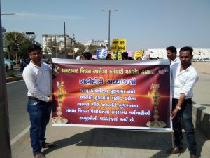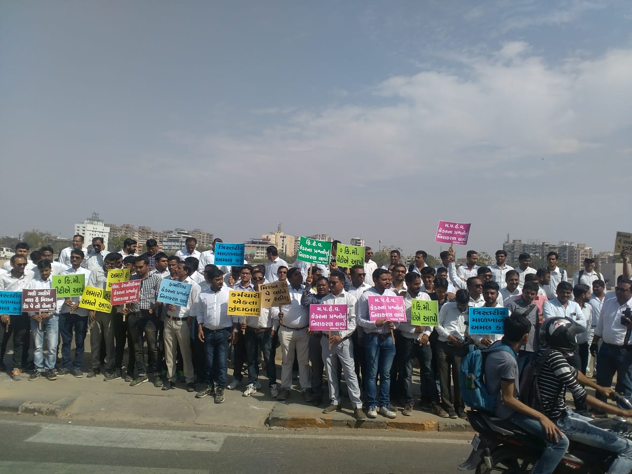 પંચાયત હસ્તકના મપહેવ, મપહેસુ, ફિહેવ, ફિહેસુ, લેબોરેટરી ટેકનિશીયન, ફાર્માશિષ્ટ સહિતના આરોગ્ય કર્મચારીઓ ગ્રેડ પે સહીતના પડતર પ્રશ્નોના ઉકેલ માટે ૧૫ ફેબ્રુઆરીથી અચોક્કસ મુતદની હડતાળ ઉપર ઉતર્યા છે અને પોતાના કામથી અળગા રહ્યા છે. સોમવારે પંચાયત હસ્તકના આરોગ્ય કર્મચારીઓ દ્વારા અમદાવાદ ખાતે આશ્રમ રોડ પરથી લાલ દરવાજા સુધી મહારેલી કાઢવામાં આવી હતી. પંચાયત હસ્તકના આરોગ્ય કર્મચારીઓ ત્રી સ્તરીય માળખાનો અમલ કરો, ૦ કીલોમીટર પીટીએ આપો, મિશન ગ્રેડ પે લઇને જ રહીશુ, મપહેવ કેડરના પ્રશ્નોનુ નિરાકરણ લાવો, ફિહેવ કેડરના પ્રશ્નોનુ નિરાકરણ લાવો, એલટી કેડરના પ્રશ્નોનુ નિરાકરણ લાવો, ફાર્મશિષ્ટ કેડરના પ્રશ્નોનુ નિરાકરણ લાવો જેવા સુત્રો લખેલા હાથમાં પ્લે કાર્ડ લઇને મહારેલીમાં જોડાયા હતા. આ ઉપરાંત હડતાળ પર ઉતરેલા પંચાયત હસ્તકના આરોગ્ય કર્મચારીઓ દ્વારા જમ્મુ કાશ્મીરના પુલવામામા આતંકવાદી હુમલા શહીદ થયેલા જવાનોને શ્રધ્ધાંજલી આપવામાં આવી હતી. આ કાર્યક્રમમાં અમદાવાદ જીલ્લાના પંચાયત હસ્તકના મપહેવ, મપહેસુ, ફિહેવ, ફિહેસુ, એલટી, ફાર્માસીસ્ટ જોડાયા હતા તેમ આંદોલન સાથે જોડાયેલા પંચાયત હસ્તકના આરોગ્ય કર્મચારીઓએ જણાવ્યુ હતુ.