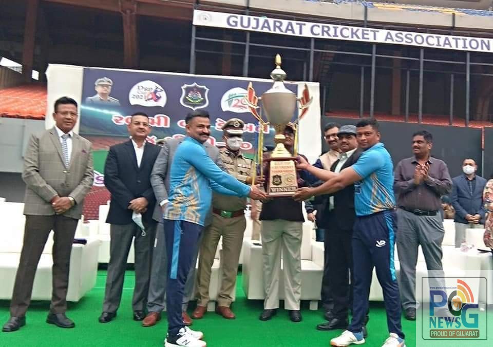 ગત તા. 3/12/21 ના રોજ નરેન્દ્ર મોદી સ્ટેડિયમ અમદાવાદ ખાતે ગુજરાત રાજ્ય પોલીસ દ્વારા આયોજિત 27 મી ડી.જી.પી. કપ કે જે 50 ઓવરની રમાય હતી તેની ફાઇનલ મેચ પોલીસ મહાનિર્દેશક અને મુખ્ય પોલીસ અધિકારી ગુજરાત રાજ્ય તથા પોલીસ કમિશ્નર અમદાવાદ શહેર તથા ગુજરાત રાજ્યના અન્ય ઉચ્ચ પોલીસ અધિકારીની ઉપસ્થિતિમાં યોજાયેલ ફાઇનલ મેચમાં વડોદર રેન્જ V/S અમદાવાદ શહેર પોલીસ વચ્ચે રમાય હતી જેમાં વડોદરા રેન્જ પ્રથમ બેટિંગ કરતાં બેટસમેન Pc બટુક રાવલ 42 તથા PSI પ્રિયંક બર્નદા 39 તેમજ PC કિરણ 38 રન ફટકારી ટીમના કુલ 203 રન બનાવ્યા હતા. જેમાં અમદાવાદ શહેરના Pc હિરેન દત્ત જે જે 8 ઓવરમાં 42 રન આપી 4 વિકેટ જીતી હતી જયારે અમદાવાદ શહેરના PC તૌસિફ ચૌહાણે 65 રન તથા લાઈનબોય નિર્ભય ભુનેતરના 46 રનની મદદથી 42.1 ઓવરમાં 204 રનનો લક્ષ્યાંક હાંસલ કરી અમદાવાદ શહેર ટીમ વિજેતા બની હતી.