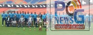 અમદાવાદ ખાતે રાજ્ય પોલીસની ડી.જી.પી. કપ ફાઈનલમાં રનર્સઅપ થતી વડોદરા રેન્જ ક્રિકેટ ટીમ.