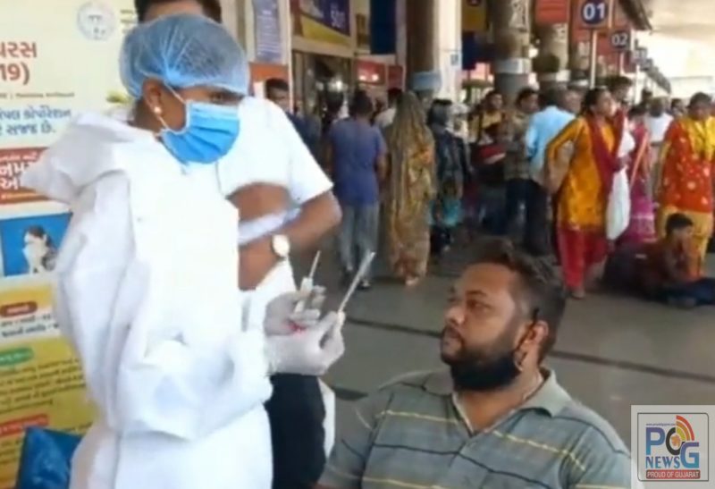 અમદાવાદમાં કોરોનાના કેસો વધતા એસ.ટી બસ સ્ટેશનમાં મુસાફરોનું ટેસ્ટિંગ શરુ કરાયું.