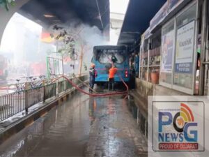 અમદાવાદમાં આજે વહેલી સવારે એક BRTS બસ એકાએક રીતે સળગી ગઈ હતી. જોકે બસના ડ્રાઈવરે સમય રહેતા પોતાની સુજબુઝથી પેસેન્જર્સને નીચે ઉતારી દીધા હતા જેથી તમામ પેસેન્જર્સનો બચાવ થયો હતો. અમદાવાદ શહેરના મેમનગરમાં આવેલા BRTS બસ સ્ટેન્ડ પર આજે સવારે અચાનક જ બસના એન્જીનમાંથી ધુમાડો નીકળતાં જ બસ ડ્રાઈવરે બધા પેસેન્જર્સને બહાર જવા કહ્યું હતું અને BRTS બસ સ્ટેન્ડ પર ઉભેલા તમામ યાત્રીઓને પણ બસ સ્ટેન્ડથી દૂર જવા કહ્યું હતું.