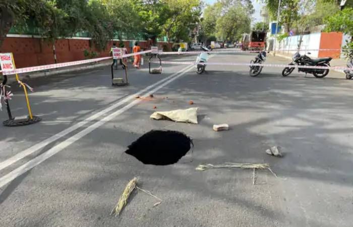 અમદાવાદમાં ભર ઉનાળે ભૂવા પડવાની ઘટના પ્રકાશમાં આવી છે. શહેરમાં ત્રણ જ દિવસમાં પૂર્વ વિસ્તારમાં ભૂવા પડવાની ત્રણ ઘટનાઓ સામે આવી છે. મણિનગરમાં એલજી હોસ્પિટલ અને દક્ષિણી ચોક સહિત આજે સવારે મેઘાણીનગરમાં એફએસએલ ચાર રસ્તા પાસે મોટો ભૂવો પડ્યો છે. આ ભૂવા પાસેથી જો કોઈ વાહન પસાર થાય તો આખો રોડ બેસી જાય એવી સ્થિતિ છે. તે ઉપરાંત એફએસએલ ચાર રસ્તાથી હોળી ચકલા સુધીનો રસ્તો પણ બંધ કરી દેવાયો છે.