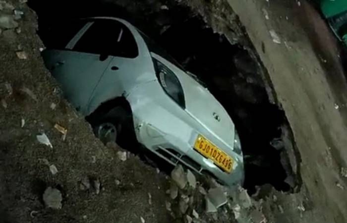 અમદાવાદનાં ફતેવાડી વિસ્તારમાં RCC રોડમાં ભૂવો પડતાં આખી કાર ગરકાવ