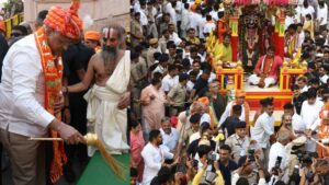 આજે અમદાવાદમાં ભગવાન જગન્નાથની 146 મી રથયાત્રા નીકળી છે ત્યારે રથયાત્રામાં રાજ્યના મુખ્યમંત્રી ભૂપેન્દ્ર પટેલે પહિંદ વિધિ કરી હતી. રથયાત્રામાં આ પહિંદવિધિનું ખુબ જ મહત્વ હોય છે. રથયાત્રા પૂર્વે રાજા આવીને સોનાની સાવરણીથી રથયાત્રા સાફ કરે છે તે વિધિને પહિંદવિધિ કહેવામાં આવે છે.