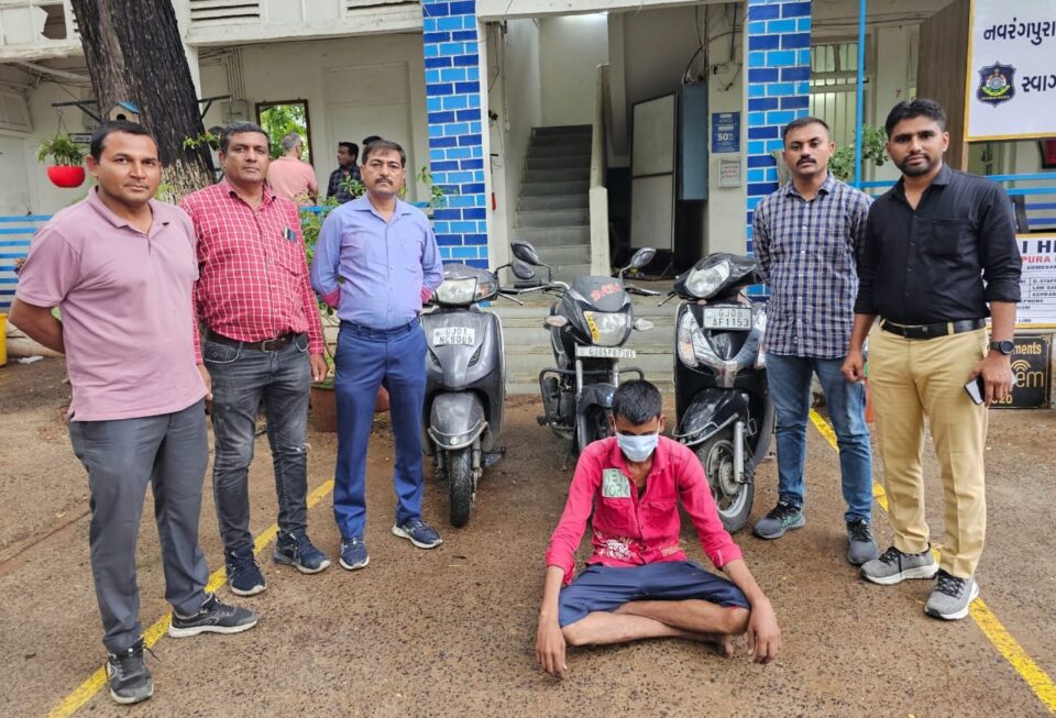 નવરંગપુરા, વસ્ત્રાપુર પોલીસ સ્ટેશનના બાઈક ચોરીના ગુન્હાનો ભેદ ઉકેલી એલ.સી.બી. ઝોન-૧, પોલીસ સ્ટાફ દ્વારા પ્રશંસનીય કામગીરી કરવામાં આવી છે. પકડાયેલ આરોપી છુટક મજુરી કરે છે અને રામદેવનગરમાં છાપરા વિસ્તારમાં રહે છે. એલસીબીએ વિવધ બાઈક સહીતનો મુદ્દામાલ કબ્જે કર્યો હતો.