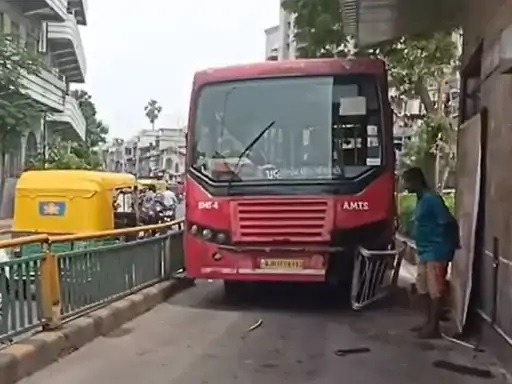અમદાવાદ : ખમાસા પાસે AMTS બસના ડ્રાઇવરે BRTS ટ્રેકમાં રોંગ સાઇડમાં બસ ચલાવી, સેન્સર ગેટ સાથે અથડાવી ગેટ તોડી નાંખ્યો