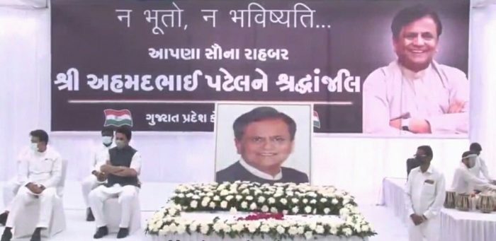 સ્વ. અહેમદ પટેલના નિધન થતાં અમદાવાદમાં શાહીબાગ ખાતે તેમની શ્રદ્ધાંજલીનો કાર્યક્રમ રાખવામાં આવ્યો હતો ત્યારે શ્રદ્ધાંજલી પાઠવવા માટે પૂર્વ મુખ્યમંત્રી શંકરસિંહ વાઘેલા, રાજ્યસભા સાંસદ પરિમલ નથવાણી પહોંચ્યા હતા. જ્યારે ગુજરાત કોંગ્રેસના નેતાઓમાં અમિત ચાવડા, વિપક્ષ નેતા પરેશ ધાનાણી, ગુજરાત પ્રભારી રાજીવ સાતવ પણ મંચ પર ઉપસ્થિત રહ્યા હતાં.