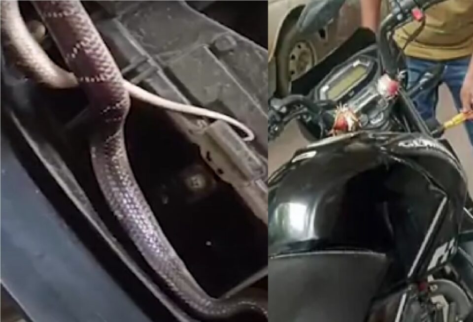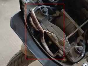 યુવક જ્યારે ઘરેથી નિકળ્યો ત્યારે તેને ખ્યાલ જ નહોતો કે, આગળના ભાગે ઝેરી 1.5 ફૂટ લાંબો સાપ પણ છે. જે સ્ટીયરીંગના આગળના ભાગેના બોનેટમાં છે. આ સાપ ત્યાં અંદર જ ફસાયેલો હતો. બાઈક આગળ ચાલતા હલન ચલન થતા સાપ પણ બહાર આવ્યો હતો. આ ઝેરી સાપ હતો જેમાં ન્યુરોટોક્સિન નામનું ઝેર હોય છે. જો આ સાપ કરડે તો માણસનું મૃત્યુ થવાની પણ સંભાવના છે.