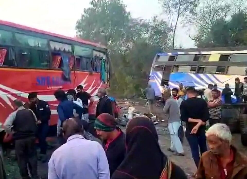 ગળતેશ્વર તાલુકના મેનપુરા પાસે પસાર થતા અમદાવાદ-ઈન્દોર હાઈવે પર મંગળવારે વહેલી સવારે બાલાસિનોર તરફના રોડ પર બે ટ્રાવેલ્સ બસો વચ્ચે અકસ્માત થયો છે. આ અકસ્માતમાં બંને બસોમાં સવાર 25થી વધુ મુસાફરોને નાની-મોટી અને કેટલાકને ગંભીર ઈજાઓ પહોંચી છે. અકસ્માત સર્જાતા જ નજીકથી સ્થાનિકો દોડી આવ્યા હતા અને પોલીસ તેમજ 108ની ટીમને જાણ કરવા આવી હતી. જ્યાં સ્થાનિકો અને પોલીસની મદદથી ઘાયલોને નજીકની ગોધરા સિવિલ હોસ્પિટલ અને તરફ ગંભીર ઈજાગ્રસ્તોને અમદાવાદ સિવિલ હોસ્પિટલમાં ખસેડવામાં આવ્યા છે. સ્થાનિકોના જણાવ્યા મુજબ એક બસ ઉજ્જૈનથી પરત ફરી અમદાવાદના નરોડાના મુસાફરોને ઉતારવા જતી હતી. જ્યારે બીજી બસના મુસાફરો મધ્યપ્રદેશથી જામજોધપુર જઈ રહી હતી. સ્થળ પર હાજર સ્થાનિકોએ જણાવ્યું કે રોડ પર ખૂબ મોટા અને અકસ્માત સર્જે તેવા ખાડાઓ પડેલા છે. અહીંયા અવાર-નવાર નાના-મોટા અકસ્માતો થતા હોય છે. ત્યારે આ બસો વચ્ચે થયેલો અકસ્માત પણ ખાડાના કારણે થયો હોવાનું લોકો જણાવી રહ્યા છે.