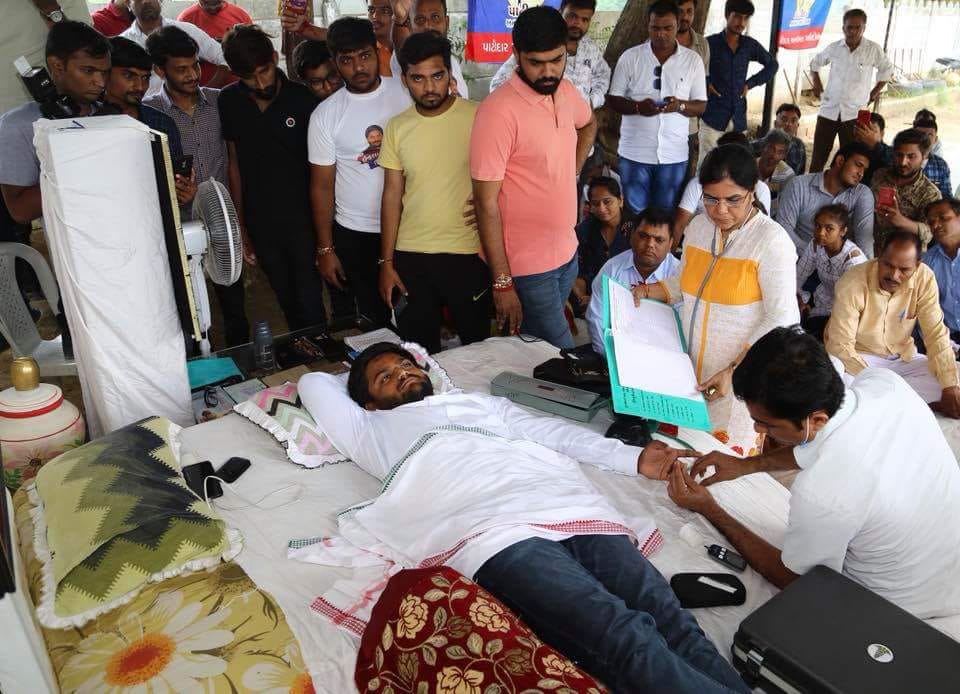 પાટીદાર યુવા નેતા હાર્દિક પટેલ અનામત અને ખેડૂતો ના દેવા માફી જેવા મુદ્દાઓ સાથે ઉપવાસ આંદોલન ઉપર બેઠો છે…ત્યારે આજે ઉપવાસ આંદોલન નો ત્રીજો દિવસઃ હોય હાર્દિક પટેલ પાસે સોલા સિવિલ ના ડોકટર ની ટિમ પહોંચી હતી..અને તેઓની તપાસમાં હાર્દિકનું બ્લેડપ્રેશર અને શુગર નોર્મલ જાણવા મળ્યું હતું તેમજ હાર્દિકના સ્વાસ્થ્યની હાલ સામાન્ય સ્થિતી હોવાનું જાણવા મળી હતી…હાર્દિક નું દર 12 અથવા 8 કલાકે મેડિકલ તપાસ કરાઇ રહ્યું છે…તેમજ ડોક્ટરે હાર્દિકને લિકવીડ લેવાની સલાહ આપી હોવાનું પણ જાણવા મળ્યું છે…