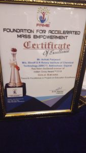 અશોક પંજવણી અગ્રણી ઉધ્યોગપતિ હોવાની સાથે સાથે સેવાકીય ક્ષેત્રે પણ સક્રિય ભુમીકા ભજવે છે. શિક્ષણક્ષેત્રે પણ તેઓએ શ્રોફ એસ.આર. રોટરી ઈન્સ્ટીટ્યુટ ઓફ કેમીકલ ટેક્નોલોજીની સ્થાપનામાં મહત્વની ભુમિકા ભજવી છે અને તેમનાં સતત પ્રયત્નોનાં કારણે જ આજે આ સંસ્થા દેશની ટોચની ઈન્સ્ટીટ્યુટમાં સ્થાન પામી છે. તેમની આ શિક્ષણક્ષેત્રની મહત્વની કામગીરીને ધ્યાનમાં લઈને ફાઉન્ડેશન ફોર એક્સેલરેટેડ માસ એમ્પાવરમેન્ટ FAME સંસ્થા દ્વારા એક્સેલન્સ માટે ઈન્ડીયન ગ્લોરી અવોર્ડ-૨૦૧૮ થી તેમને નવાજવામાં આવ્યાં છે. તેઓને આ પ્રતિષ્ઠિત અવોર્ડ મળતાં ઉધ્યોગજગતને અભિનંદન પાઠવી ખુશી વ્યક્ત કરી છે.
