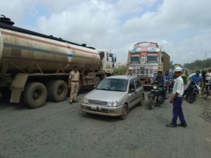 અંક્લેશ્વરમાં વરસાદે વિરામ લીધો હોવા છતા હજુ ઠેર ઠેર ભુવા સર્જાઇ રહ્યા છે. અને રસ્તાઓ પર ખાડા-ખબોચીયાં જોવા મળી રહ્યાં છે હાલમાં જ અંક્લેશ્વરથી વાલિયા જવાનાં રાજ્ય ધોરીમાર્ગ પર GIDC માં આવેલ જલદર્શન સોસાયટીની સામે રસ્તામાં મોટો ભુવો સર્જાયો છે. જેને કારણે ટ્રાફિકને અસર થઈ રહી છે. આ માર્ગ પરથી રોજનાં હજારો નોકરિયાતો તેમ જ શાળાનાં વિધ્યાર્થીઓ અને ભારે વાહનો પસાર થાય છે. આ ભુવો આ વાહન ચાલકો માટે અકસ્માતનું કારણ બની શકે છે પરંતુ જાણ કરવા છતાં PWD તંત્રનાં અધિકારીઓએ હજુ કોઈ કામગીરી કરી નથી અને ટ્રાફિક જામ થઈ રહ્યો છે.