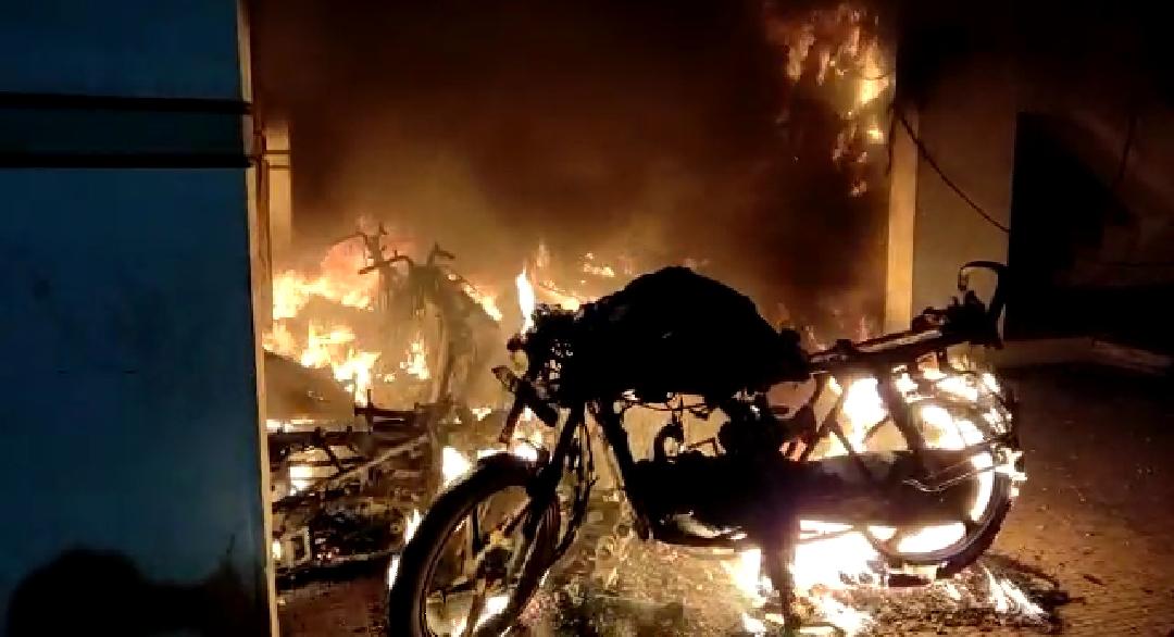 અંકલેશ્વર ના ભરકોદ્રા ગામ નજીક આવેલ મંગલમ રેસિડેન્સીના પાર્કિગમાં ગત રાત્રીના સમયે અચાનક આગ ભભૂકી ઉઠતા ૬ જેટલા મોટરસાયકલ સળગી ઉઠ્યા હતા..અચાનક પાર્કિંગમાં આગ લાગવાની ઘટનાના પગલે એક સમયે ભારે અફરાતફરીનો માહોલ સર્જાયો હતો…