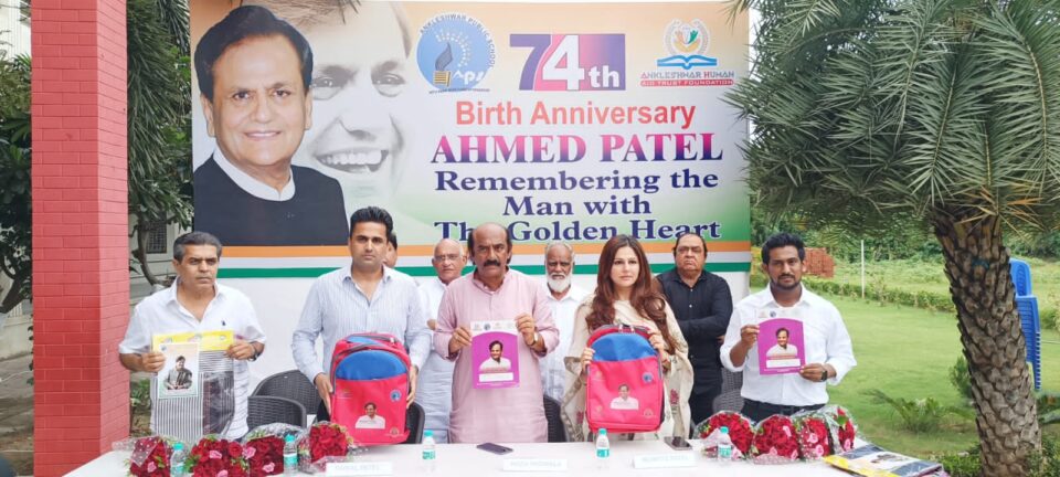 કોંગ્રેસના દિગ્ગજ નેતા અને ભરૂચ જિલ્લાના પનોતા પુત્ર સ્વ. અહેમદભાઈ પટેલની ૭૪ મી જન્મ જયંતી નિમિત્તે તેમની સ્મૃતિ અર્થે કાર્યક્રમ યોજાયો હતો. અંકલેશ્વરના ઉમરવાડા રોડ સ્થિત અંકલેશ્વર પબ્લિક સ્કૂલ ખાતે યોજાયેલા કાર્યક્રમમાં સ્વ. અહેમદભાઈ પટેલના પુત્ર ફૈઝલ પટેલ અને પુત્રી મુમતાઝ પટેલ, પબ્લિક સ્કૂલના ટ્રસ્ટ પ્રમુખ નાઝુ ફડવાલા, સહિત આગેવાનો ઉપસ્થિત રહ્યા હતા.