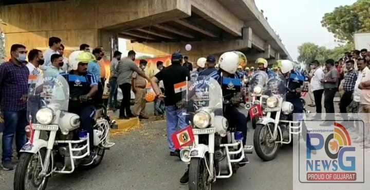 રાષ્ટ્રીય એકતા દિવસની ઉજવણી નિમિતે રેલીનું કચ્છ જિલ્લાના લખપત ખાતેથી પ્રસ્થાન કરાયું હતું. ૩૧ ઓક્ટોબર રાષ્ટ્રીય એકતા દિવસ નિમિત્તે આઝાદી કા અમૃત મહોત્સવની ઉજવણીના એક ભાગરૂપે ગુજરાત પોલીસ દ્વારા યોજાયેલ મોટરસાયકલ રેલી વડોદરા, કરજણ, પાલેજ, નબીપુર, અને ભરૂચ થઈ અંકલેશ્વરના ગડખોલ પાટિયા આવી પહોંચી હતી અને બહેનો દ્વારા પુષ્પગુચ્છથી ભવ્ય સ્વાગત કરાયું હતું.