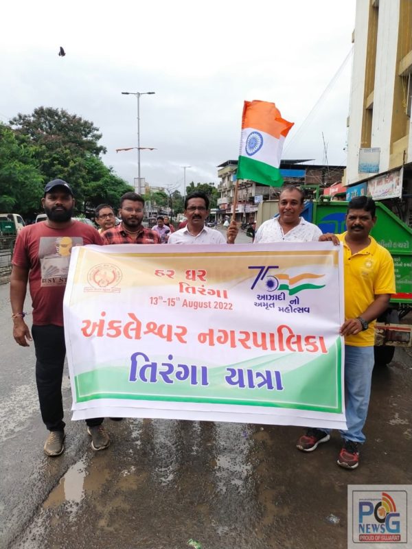 આપણો દેશ જયારે આઝાદીના 75 વર્ષ ઉજવી રહ્યો છે ત્યારે આઝાદી કા અમૃત મહોત્સવ નિમિત્તે અંકલેશ્વર નગરપાલિકા દ્વારા આજરોજ રેલ્વે સ્ટેશનથી પિરામણ નાકા નગરપાલિકા ઓફિસ સુધી તિરંગા યાત્રા રેલીનું આયોજન ચીફ ઓફિસર કે.એમ. કોલડિયાના માર્ગદર્શન હેઠળ આયોજન કરવામાં આવ્યું.