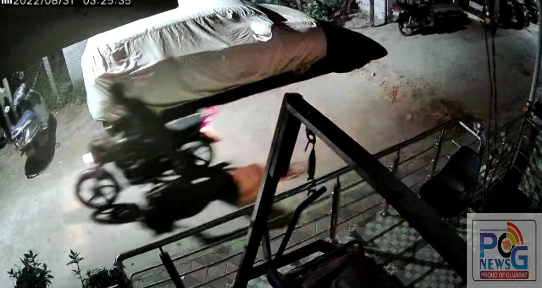અંકલેશ્વર શહેરમાં આવેલ ફતેહનગર વિસ્તારમાં ગતરોજ રાત્રીના સમયે બિન્દાસ અંદાજમાં સોસાયટીમાં લટાર મારી એક ચોર ઇસમે ગણતરીની સેકંન્ડોમાં મકાન બહાર પાર્ક કરેલ બાઇકની ઉઠાંતરી કરી ફરાર થઈ જતા ભારે ખળભળાટ મચ્યો છે, મહત્વની બાબત છે કે બાઇકની ચેન ઉતરી ગઈ હોવા છતા પણ ચોરે બાઇકનાં છોડી હતી અને આખરે ચોરે બાઇકને ધકા મારીને પણ ચોરી કરી બાઇક લઇ જવામાં સફળ થયો હતો.