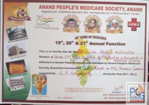સરદાર પટેલ યુનિવર્સિટી દ્વારા લેવામાં આવેલ ૨૦૨૧ ની પરીક્ષામાં એમ.એસ. સી. (ફોરેન્સીક સાયન્ય)ની પરીક્ષામાં સૌથી વધુ માર્કસ મેળવી શ્રી પી.એમ. પટેલ ઇન્સટીટયુટ ઓફ પી.જી.સ્ટડીઝ એન્ડ રીસર્ચની એપ્લાઇડ સાયન્સમાં અંકલેશ્વરની વિદ્યાર્થીની કૌસર મુલ્લા એ ૯.૧૨ સી.જી. પી. એ. સાથે ફોરેન્સીક સાયન્સમાં “ગોલ્ડ મેડલ” મેળવી ઝળહળતી સફળતા પ્રાપ્ત કરી છે. તેમને મળેલી આ સફળતાને સમાજનાં વિવિધ લોકો એ આવકારી શુભેચ્છાઓ પાઠવી છે.