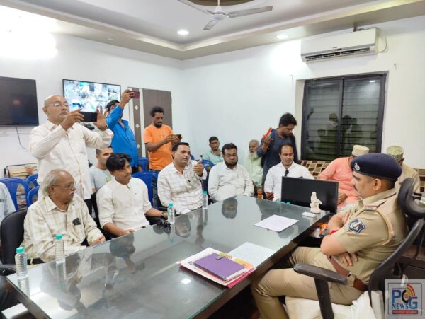 અંકલેશ્વર શહેર પોલીસ મથક ખાતે આગામી ઇદે મિલાદના તહેવારને અનુલક્ષીને શાંતિ સમિતિની મિટિંગ યોજાઇ હતી, જેમાં વિવિધ મુદ્દે આગેવાનો સાથે ચર્ચાઓ કરવામાં આવી હતી.