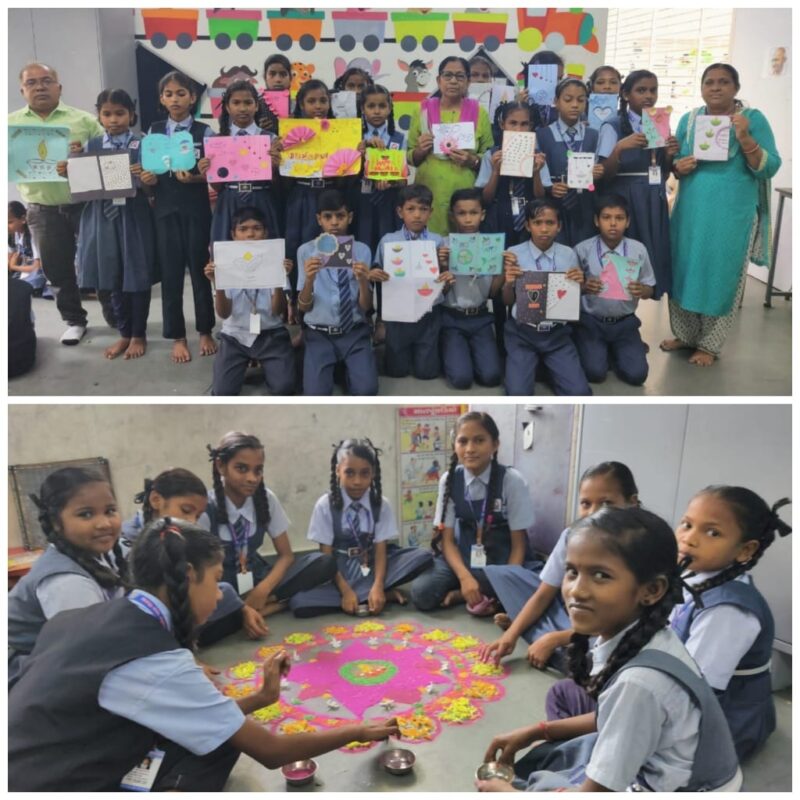 અંકલેશ્વરની પ્રાથમિક શાળા પીરામણમાં રંગોળી અને દિવાળી કાર્ડ બનાવવાની સ્પર્ધા યોજાઇ.