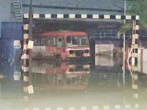 અંકલેશ્વરમાં ભારે વરસાદી માહોલના પગલે ઠેર ઠેર જળ બંબાકાળની સ્થિતિનું સર્જન થયું હતું, ખાસ કરી પીરામાણ ગામથી હાઇવેને જોડતા અંદર પાસમાં આમલા ખાડી ઓવરફ્લો થતા તેના પાણી રસ્તા ઉપર ફરી વળ્યા હતા, અંદાજીત રોડથી 3 થી 4 ફૂટ ઊંચે પાણી વહેતા થતા એક મહારાષ્ટ્ર પાર્સિંગની બસ પાણીમાં ફસાઈ હતી, જે બાદ ભારે દોડધામ મચી હતી.
