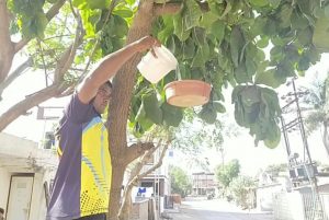 હાલ ગરમીની સિઝન આવી ગઈ છે ત્યારે મનુષ્યની સાથે સાથે પક્ષીઓ પણ પાણી માટે તરસતા હોય છે. જ્યારે સામાજિક સંસ્થાઓ દ્વારા પણ ગરમીની સિઝનમાં પક્ષીને પાણી મળી રહે તે માટે કુંડાનું વિતરણ કાર્યક્રમ દર વર્ષે યોજવામાં આવતા હોય છે. પરંતુ હાલ દેશમાં કોરોના વાયરસને ગંભીર બીમારીને લઇને આ વર્ષે સામાજિક સંસ્થાઓ દ્વારા પણ પક્ષીઓને પાણી પીવા માટેનાં કુંડા વિતરણનો કાર્યક્રમ પણ રદ કરવામાં આવ્યું હતું. પરંતુ આજે ગુજરાત હાઉસિંગ બોર્ડનાં યુવાનો દ્વારા પક્ષીઓને પાણી મળી રહે તે હેતુથી વૃક્ષ ઉપર પાણીના કુંડા લગાડવામાં આવ્યા હતા અને લોકોને કુંડા લગાડવા માટે નમ્ર વિનંતી કરવામાં આવી હતી. ગુજરાત હાઉસિંગનાં યુવાનો દ્વારા તમામ સામાજિક કાર્ય કરવામાં આવી રહ્યા છે તે બદલ અંકલેશ્વરનાં લોકો પણ તેમને પ્રોત્સાહન આપી રહ્યા છે.