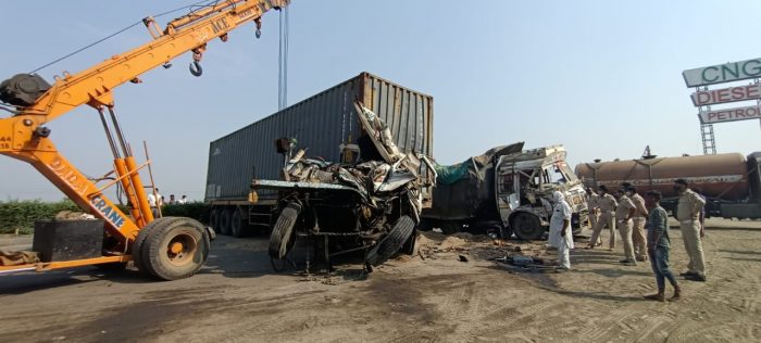 અંકલેશ્વર-રાજપીપળા ચોકડી પાસે વડોદરા તરફ જવાના માર્ગ પાસે આવેલ વર્ષા હોટલ પાસે અકસ્માત સર્જાતા ભારે ટ્રાફિક જામની સમસ્યા સર્જાવા પામી છે. નેશનલ હાઇવે નંબર 48 ઉપર આવેલ રાજપીપળા ચોકડી નજીક વર્ષા હોટલ પાસે યુ ટર્ન પાસે અકસ્માતોની વણજાર અવારનવાર સર્જાતી રહે છે જેમાં આજરોજ પણ એક કન્ટેનર તેમજ રેતી ભરેલ ટ્રક સાથે ધડાકાભેર અથડાતા બંને ટ્રકના ડ્રાઇવર-કંડકટરને નાની મોટી ઈજાઓ થવા પામી હતી. અકસ્માતને લઈ ભારે ટ્રાફિક સર્જાવા પામ્યો હતો, ઘટના સ્થળે પોલીસ પહોંચી જઈ ટ્રાફિકને હળવો કરવામાં આવ્યો હતો. જિલ્લા ટ્રાફિક પોલીસ અવારનવાર જે રોજ દંડાત્મક કાર્યવાહી વાહનચાલકો સામે કરતી આવી છે પરંતુ અંકલેશ્વર આજુબાજુ હાઈવે ઉપર અકસ્માતનો વધારો જોવા મળી રહ્યો છે આથી અકસ્માતોની સંખ્યામાં ઘટાડો થાય તેવી કામગીરી કરે એવી લોકમાંગ ઉઠવા પામી છે.