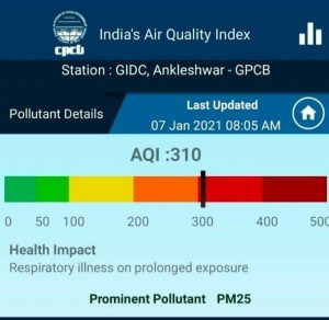 તાજેતરમાં હવામાન ખાતના એક અહેવાલ મુજબ અંકલેશ્વરમાં વાયુ પ્રદૂષણ અતિશય વધી જતાં આ વિસ્તાર રેડ ઝોનમાં સમાવેશ કરાયો છે. આ વિસ્તારમાં રેડ ઝોનમાં સમાવેશ કરાયો છે. આ વિસ્તારમાં વાયુ પ્રદૂષણ અતિશય વધી જતાં આઇકયુ ઇન્ડેથીમાં P.M. 2.5 સાથે આંકડો 310 પર પહોંચ્યો છે. જાન્યુઆરી માહિનામાં સતત વધી રહેલા વાયુ પ્રદૂષણ લોકોના સ્વાસ્થ્ય માટે અત્યંત જોખમી સાબિત થનારું પણ જાણકારોએ જણાવ્યુ છે. અંકલેશ્વરનું આ વાયુ પ્રદૂષણ રેડ ઝોનમાં પહોંચતા લોકોના સ્વાસ્થ્ય પર ગંભીર અસરો પહોંચી શકે છે.
