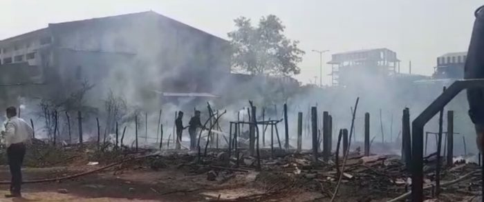અંકલેશ્વર જી.આઇ.ડી.સી જે.બી કેમિકલ કંપનીની બાજુમાં આવેલાં ઝુંપડાઓમાં આગ લાગી.