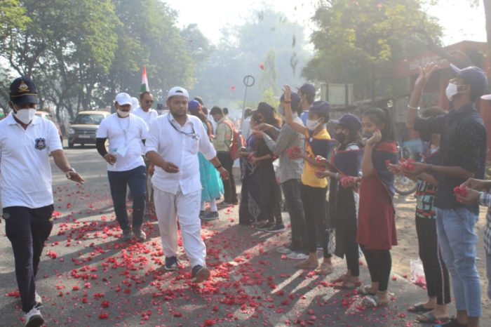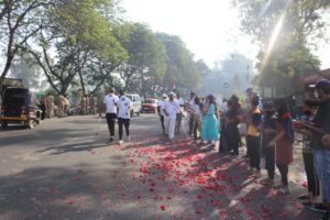 અંકલેશ્વર : આઝાદીનાં અમૃત મહોત્સવ અંતર્ગત દાંડી યાત્રાનું અંકલેશ્વરમાં આગમન થતાં દાંડી યાત્રીઓનું ફૂલો દ્વારા સ્વાગત કરાયું.