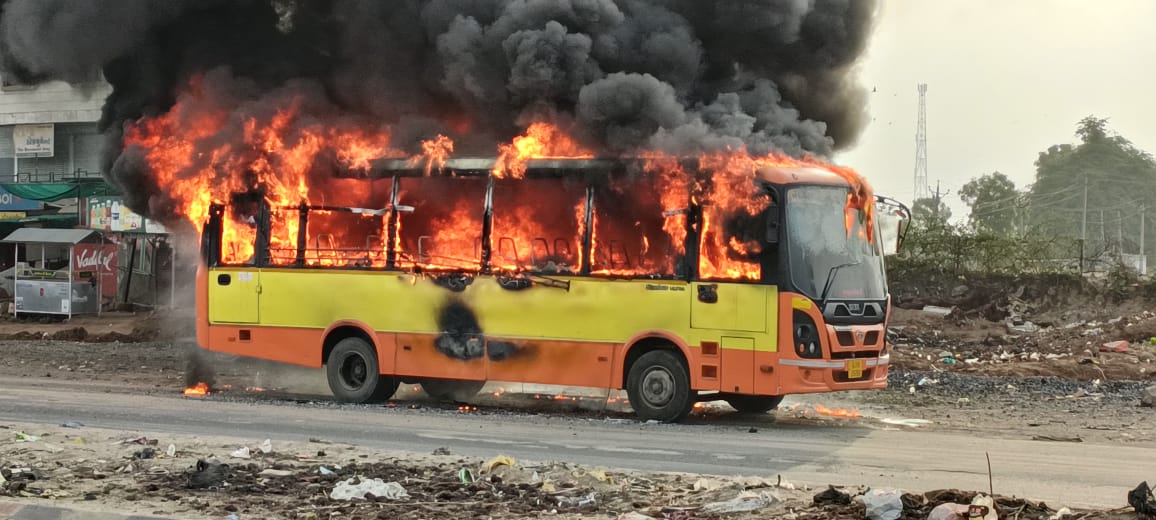 બનાસકાંઠાના છાપી હાઇવે પર એસ.ટી બસમાં એકાએક આગ ફાટી નીકળી : બસમાં શોર્ટસર્કિટથી બસ બળીને ખાખ.