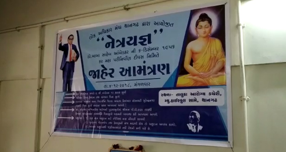 સજીવના નેત્રની વાત કરીએ તો નેત્ર વગરની જીંદગી કાળા ધાબા જેવી કહેવાય ત્યારે આવા નેત્રોને રક્ષણ આપવા નેત્રયજ્ઞ જેવા કેમ્પનું આયોજન થતું હોય છે ત્યારે સુરેન્દ્રનગર થાનગઢ મુકામે બાબાસાહેબ આંબેડકરના નિર્વાણ દિન નિમિતે લોક અધિકાર મંચ દ્વારા નેત્રયજ્ઞનું આયોજન કરવામાં આવ્યું હતું