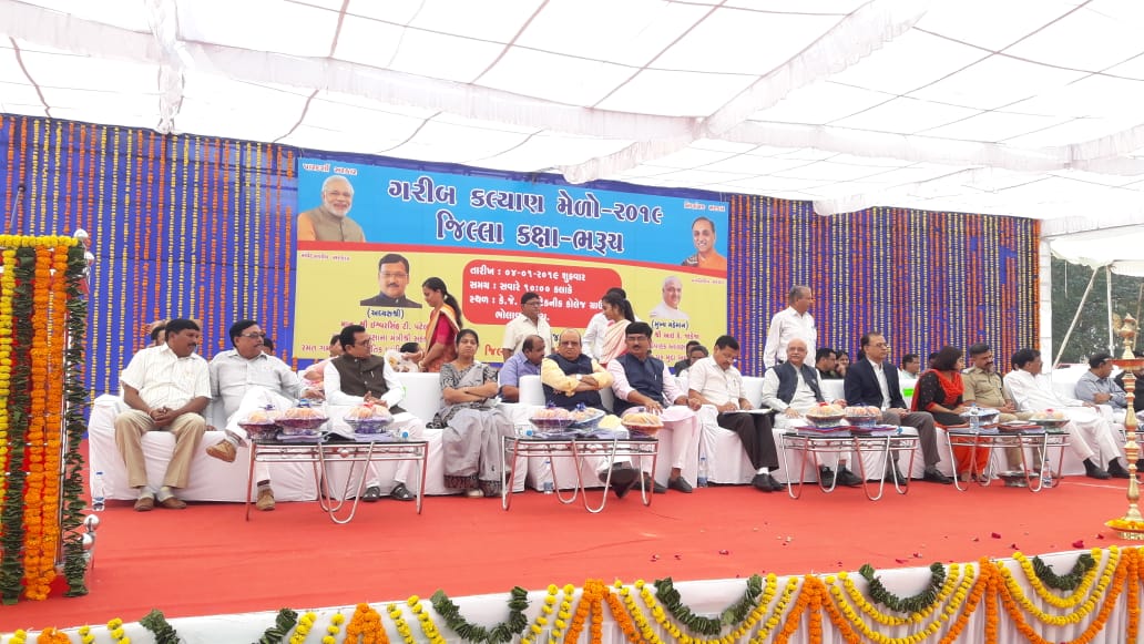 ગુજરાત સરકાર દ્વ્રારા વિવિધ સ્થળે ગરીબો ના કલ્યાણ અર્થે તબક્કા વાર ગરીબ કલ્યાણ મેલા યોજાતા રહ્યા છે. ત્યારે ભરુચ ખાતે પણ આજે જિલ્લા કક્ષાના ગરીબ કલ્યાણ મેળાનું આયોજન કરવામાં આવ્યું.આ ગરીબ કલ્યાણ મેળામાં ભરુચના 9 તાલુકા અને 4 નગર પાલિકા વિસ્તારના 3078 લાભાર્થીઓને રૂપિયા બે કરોડ 13 લાખની સાધન સહાયનું વિતરણ કરવામાં આવ્યું હતું.