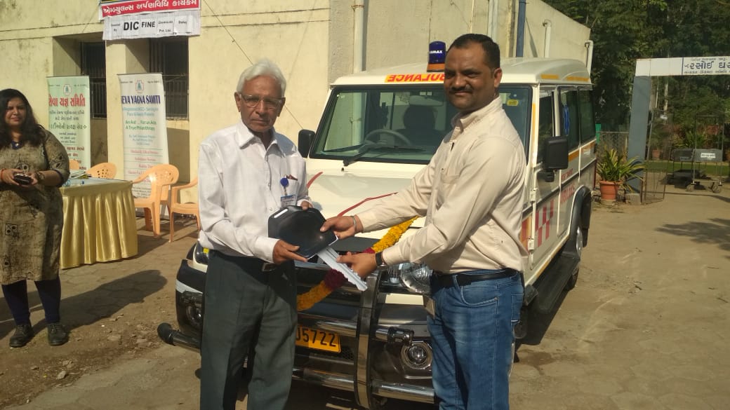 ભરૂચની દહેજ ઔદ્યોગિક વિસ્તારમાં આવેલ d i c કેમિકલ દ્વારા સેવા યજ્ઞ સમિતિ ને એમ્બ્યુલન્સ આપવામાં આવી હતી ભરૂચ જિલ્લાના અંતરિયાળ ગામમાં લાવવા લઇ જવા માટે સેવા સમિતિના અસ્મિતા કનુભાઈ ઠક્કર ને એમ્બ્યુલન્સ કરવામાં આવી હતી આ પ્રસંગે કંપનીના csr હેડ આરતી અને એકઝીકયુટીવ ઉપસ્થિત રહ્યા હતા