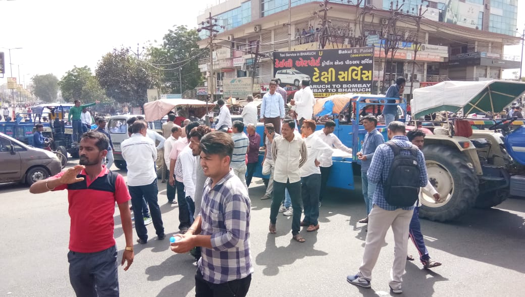 ભરૂચ જિલ્લાના ખેડૂતો આર્થિક રીતે પાયમાલ થઈ ગયા છે ત્યારે તેઓ હવે પોતાની સમસ્યા પણ રજૂ કરી શકે તેવી પરિસ્થિતિ જણાતી નથી.આ બાબતને સાબિત કરતી ઘટના તારીખ ૨૭-૨-2019ના રોજ બની હતી.જે અંગેની સીલસીલાબંધ વિગતો જોતા અર્ધ શિયાળું પાક એવા મગનું વાવેતર ભરૂચ જિલ્લાના વાગરા અને આમોદ તાલુકામાં સૌથી વધુ કરાય છે.આ વર્ષે પણ છ હજાર હેક્ટર જેટલી જમીનમાં અર્ધ શિયાળુ મગનું વાવેતર કરવામાં આવ્યું હતું પરંતુ કોઇક કારણોસર મગ ખરીદી કેન્દ્ર વાલિયા ખાતે અપાયું જે યોગ્ય નથી તે અંગે ખેડૂતોએ આવેદનપત્ર પણ પાઠવ્યું પરંતુ તંત્ર દ્વારા કોઈ હકારાત્મક અભિગમ ન અપનાવાયો.બીજી બાજુ દિવસો વીતતા ગયા ખેડૂતો ઓનલાઇન રજિસ્ટ્રેશન ન કરાવી શક્યા.મગની ખરીદી ન થાય તો હજારો ખેડૂતોના કુટુંબો ભૂખે મરે આખરે ન સેહવાતા ખેડૂતોએ અખિલ ભારતીય કિસાન સંઘના નેજા હેઠળ ટ્રેક્ટર અને ટ્રેલર સાથે વાગરા થી કલેક્ટર કચેરી સુધી કૂચ કરી પરંતુ કેટલાક કારણોસર ખેડૂતોની ટ્રેક્ટર અને ટ્રેલરોનો આ કાફલો શ્રવણ ચોકડી ખાતે રોકાઈ ગયો અને ત્યાં જ ખેડૂતો બેસી ગયા.ધીમે-ધીમે ટ્રાફિકજામ થવા માંડ્યું બંને દિશામાં ટ્રાફિક જામની સમસ્યા ઘેરી બની શ્રવણ ચોકડી થી પાંચબત્તી તરફ આવવું લગભગ અશક્ય થઈ ગયું.કલાકો સુધી આ પરિસ્થિતિ રહેતા આખરે પહેલા પોલીસે હળવો લાઠીચાર્જ કર્યો તે પહેલા સમજાવટ કરી પરંતુ ખેડૂતોએ નારા લગાવ્યા અને ટ્રાફિકની સમસ્યા વધુ વકરી તેથી પોલીસે ના છૂટકે હળવો લાઠીચાર્જ કરવો પડ્યો.ત્યારબાદ કલેક્ટર અને ખેડૂતોના પ્રતિનિધિઓ વચ્ચે વાતાઘાટોની શરૂઆત થઈ તે હજી ચાલી રહી છે.સાંજે ૬:૩૦ સુધી વાતાઘાટો ચાલી રહી છે. દરમિયાન ભરૂચ જિલ્લા કોંગ્રેસ સમિતિના પ્રમુખ પરિમલસિંહ રાણાએ જણાવ્યું કે ખેડૂતોની સમસ્યા અંગે સરકાર દ્વારા હકારાત્મક નિર્ણય લેવાવા જોઈએ જે ન લેવાતા આવી પરિસ્થિતિનું સર્જન થાય છે જેને કોંગ્રેસ સખત શબ્દોમાં વખોડી નાખે છે.