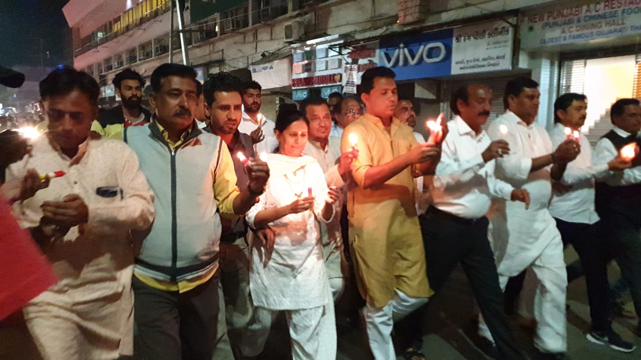 ગત મોડી રાત્રે ભરૂચ જિલ્લા કોંગ્રેસ સમિતિ દ્વારા શહીદોને શ્રદ્ધાંજલિ અર્પવામાં આવી હતી.ભરૂચ જિલ્લા કોંગ્રેસ સમિતિના પ્રમુખ પરિમલસિંહ રણાની આગેવાની હેઠળ કેન્ડલ માર્ચ યોજાઈ હતી સ્ટેશન રોડ ખાતે આવેલ ભરૂચ જિલ્લા કોંગ્રેસ સમિતિના મધ્યસ્થ કાર્યાલય ખાતેથી કેન્ડલ માર્ચનું આયોજન કરાયું હતું જે પાંચબત્તી સર્કલ ખાતે પહોંચીને શહીદોને શ્રદ્ધાંજલિ પાઠવી હતી આ પ્રસંગે પ્રવક્તા નાઝુ ફળવાલા શહેર પ્રમુખ તેજપ્રીત શોખી ભરૂચ જિલ્લા યુવા કોંગ્રેસના પ્રમુખ શેરખાન પઠાણ અને અન્ય આગેવાનો જોડાયા હતા.