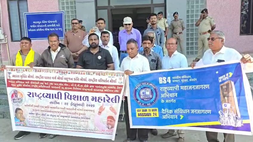 ભરૂચમાં આજે ભારત મુક્તિ મોરચા, બહુજન ક્રાંતિ મોરચા તથા રાષ્ટ્રીય પીછડા વર્ગ મોરચા દ્વારા BAMCEF અને ભારત મુક્તિ મોરચાના રાષ્ટ્રીય અધિવેશનને છેલ્લી ઘડીએ મંજૂરી રદ કરવાના નિર્ણય સામે કડક વિરોધ નોંધાવવામાં આવ્યો હતો. સંગઠનોના પ્રતિનિધિઓએ રાષ્ટ્રપતિને સંબોધીને ભરૂચ જિલ્લા કલેક્ટરને આવેદનપત્ર સોંપ્યું હતું.