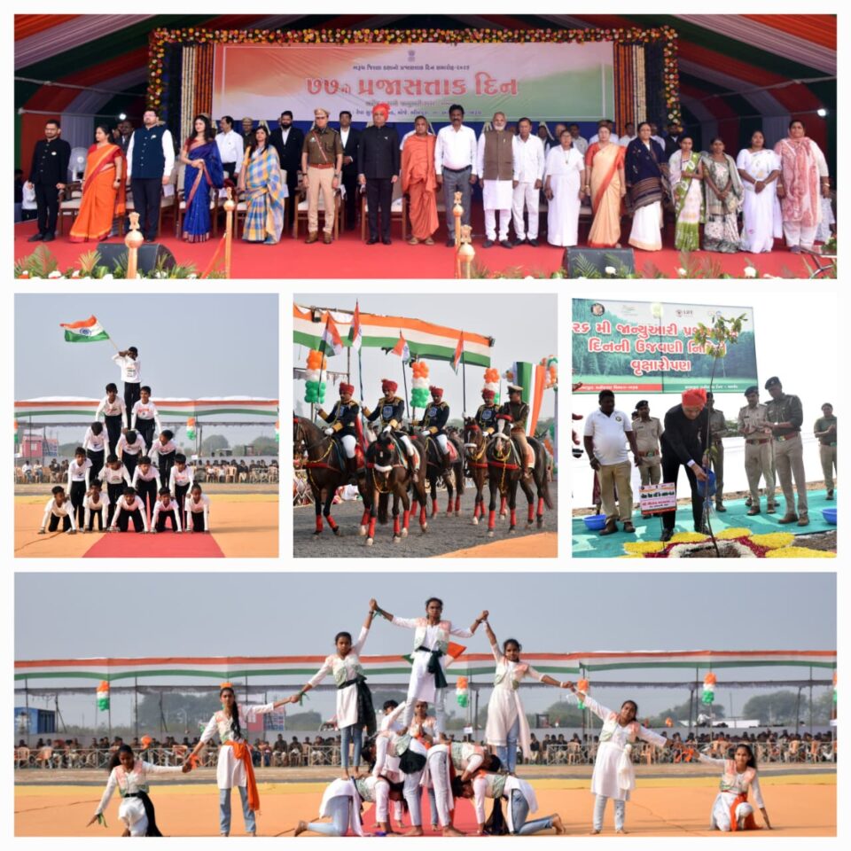 સમગ્ર દેશમાં થઇ રહેલી ૭૭માં ગણતંત્ર દિનની ઉજવણી અંતર્ગત ભરૂચ જિલ્લાના આમોદ તાલુકામાં આવેલા રેવા સુગર ગ્રાઉન્ડ, ભીમપુરા ખાતે જિલ્લા કલેક્ટર ગૌરાંગ મકવાણાની અધ્યક્ષતામાં જિલ્લા કક્ષાના ગણતંત્ર દિવસની દબદબાભેર ઉજવણી કરવામાં આવી હતી.