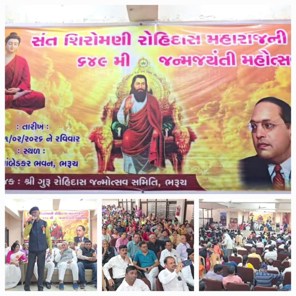 સંત શિરોમણી ગુરુ શ્રી રોહિદાસ મહારાજની 649મી જન્મજયંતી નિમિત્તે ભરૂચ શહેરમાં ભવ્ય જન્મજયંતી મહોત્સવનું આયોજન કરવામાં આવ્યું હતું. આ સાથે રોહિદાસવંશીય સમાજના યુવક-યુવતીઓ માટે લગ્નોત્સવ અંતર્ગત પરિચય અને પસંદગી મેળાનું પણ સફળ આયોજન કરવામાં આવ્યું હતું.