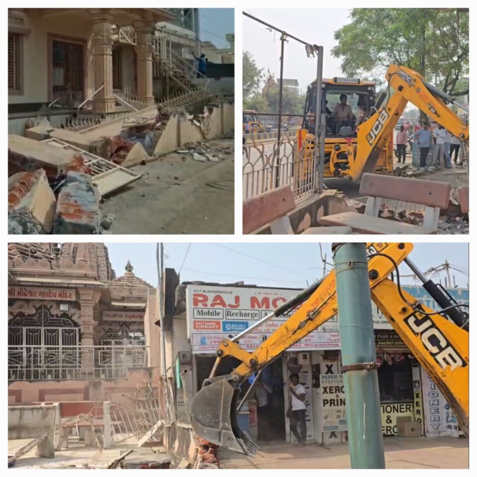 ભરૂચ શહેરમાં ગુરૂવારે સવારે શક્તિનાથ સર્કલથી શ્રવણ ચોકડી સુધીના લિંકરોડ પર બન્ને તરફના દબાણો દૂર કરવાની કાર્યવાહી આરએન્ડબી વિભાગે હાથ ધરી હતી. કાર્યવાહી દરમિયાન સ્વામિનારાયણ મંદિર તેમજ મોઢેશ્વરી મંદિરનો પણ કેટલોક ભાગ દબાણમાં આવતાં તત્રએ જેસીબીથી દબાણો તોડી નાંખ્યાં હતાં. જોકે, પ્રાથમિક તબક્કે લોકોમાં મંદિરોના દબાવાને દૂર કરવાને લઈને થોડો રોષ જોવા મળ્યો હતો. પરંતુ અધિકારીઓએ લોકોની સમજાવટ કરી દબાણ હટાવવાની કામગીરી પૂર્ણ કરી હતી.