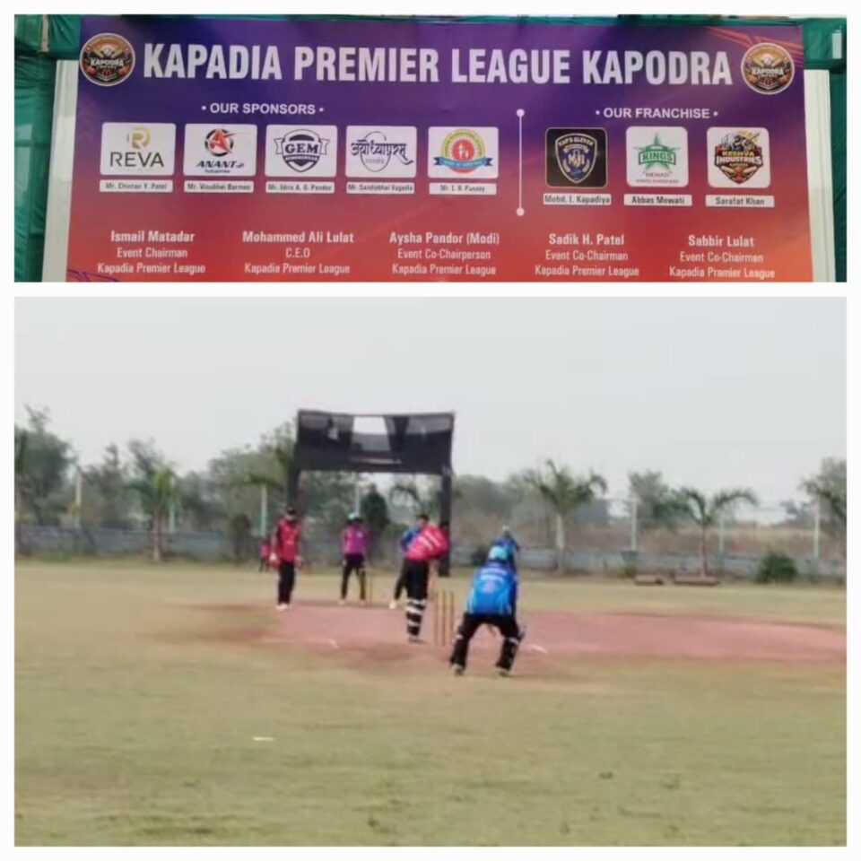 અંકલેશ્વરના કાપોદ્રા ગામ દ્વારા ભાદી ગામ સ્થિત સ્પોર્ટ્સ એકેડમી ક્રિકેટ ગ્રાઉન્ડ ખાતે કાપડિયા પ્રીમિયર ક્રિકેટ ટુર્નામેન્ટનું આયોજન કરવામાં આવ્યુ