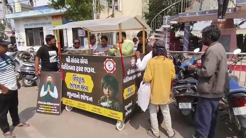 શ્રી શંકર સેવા ચેરીટેબલ ટ્રસ્ટ દ્વારા ભરૂચ શહેર અને તાલુકામાં સેવાનું ભાથું પીરસવામાં આવે છે.આ ટ્રસ્ટ દ્વારા વધુ એક સેવા શરૂ કરવામાં આવી છે.ભરૂચ શહેરના સ્ટેશન વિસ્તારમાં વિના મૂલ્યે ભુખ્યાને ભોજન સેન્ટરનો પ્રારંભ કરવામાં આવ્યો છે.જ્યાં વિના મૂલ્યે ભુખ્યાઓને ભોજન પીરસવામાં આવી રહ્યું છે.આ સેવાનો જરૂરિયાતમંદ લોકો લાભ લઇ રહ્યા છે.આ પ્રસંગે શંકર પટેલએ જણાવ્યું હતું કે તેઓના 46માં જન્મ દિન નિમિત્તે આજે ભુખ્યાને ભોજન સેન્ટર શરૂ કરવામાં આવ્યું છે.જે મહિનામાં બે દિવસ ચાલુ રાખ્યા બાદ રોજેરોજ ચાલુ રાખ્યા પ્રયાસ કરવામાં આવશે.સાથે તેઓએ કોઈનો પણ જન્મ દિવસ,પુણ્યતિથિ કે કોઈ પણ પ્રસંગ હોઈ તો તેઓ ભૂખ્યા ભોજન સેન્ટર થકી પ્રસાદી આપી શકશે…