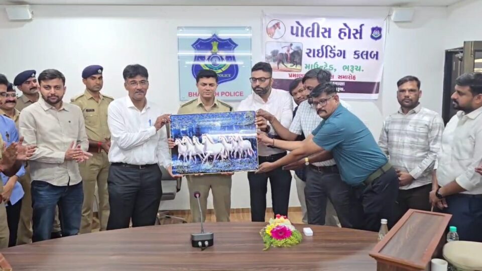 ભરૂચ પોલીસ વિભાગના હોર્સ રાઈડિંગ ક્લબ (માઉન્ટેડ યુનિટ) દ્વારા આયોજિત ત્રણ મહિનાની હોર્સ રાઈડિંગ તાલીમ સફળતાપૂર્વક પૂર્ણ થતાં પ્રમાણપત્ર વિતરણનો કાર્યક્રમ ઉજવણીમય વાતાવરણમાં યોજાયો હતો. શહેરના નાગરિકોને ઘોડેસવારીની તાલીમ આપી પ્રજા અને પોલીસ વચ્ચેનો સંબંધ વધુ સદૃઢ બને તે હેતુસર આ તાલીમ વર્ગનું આયોજન કરવામાં આવ્યું હતું.