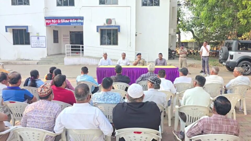 ભરૂચ શહેરના એ ડિવિઝન પોલીસ મથક ખાતે હોળી-ધુળેટી અને રમઝાન માસના પવિત્ર પર્વને અનુલક્ષીને શાંતિ સમિતિની બેઠકનું આયોજન કરવામાં આવ્યું હતું. તહેવારો શાંતિપૂર્ણ અને સૌહાર્દપૂર્ણ વાતાવરણમાં ઉજવાય તેમજ શહેરમાં કાયદો અને વ્યવસ્થા જળવાઈ રહે તે માટે બેઠકમાં વિસ્તૃત ચર્ચા કરવામાં આવી હતી.