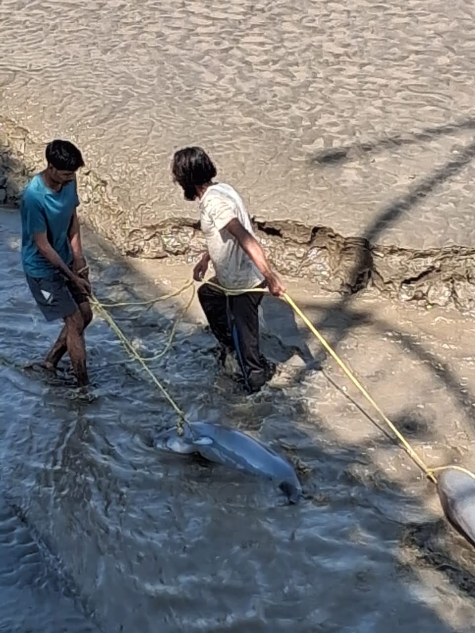 દહેજ દરિયા કિનારે લો ટાઈડમાં ફસાઈ ગયેલી બે ડોલ્ફિનનું સફળ રેસ્ક્યૂ