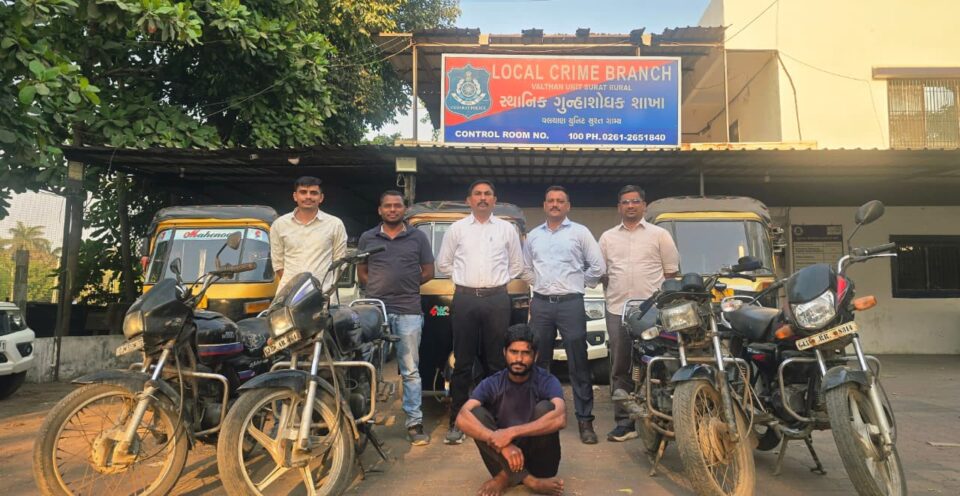 સુરત ગ્રામ્ય પોલીસે વાહન ચોરીના વધતા બનાવોને લઈ કડક કાર્યવાહી કરતા એક મોટા ગેંગનો ભાંડો ફોડ્યો છે. એલસીબી અને પેરોલ ફલો સ્ક્વોડની સંયુક્ત કામગીરીમાં રીઢા વાહનચોર સોયેબ ઉર્ફે સોયેબ બોબડાને ઝડપી પાડવામાં આવ્યો છે અને તેની પાસેથી કુલ 7 ચોરીના વાહનો કબ્જે કરવામાં આવ્યા છે.