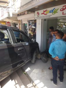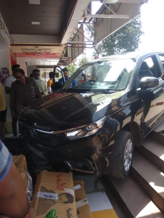 ભરૂચ શહેરનાં ઝાડેશ્વર રોડ ઉપર આવેલ આઇનોક્ષની સામે શ્રી નિકેતન શોપિંગ સેન્ટર આવેલ છે. અહીં એક હોંડા કારનાં ચાલકે કાર ચાલુ કરતાં ગેયરમાં કાર હોવાથી કારે સ્પીડ પકડી લેતા બે-ત્રણ બાઇકને ટક્કર મારી એક સ્કૂટરને ધસેડીને સીધી જ એક દુકાનમાં ધુસી ગઈ હતી. જોકે દુકાનમાં કાર આવતી જોઈ લોકોમાં દોડધામ મચી હતી. આ ઘટના નજીકમાં લાગેલા CCTV કેમેરામાં કેદ થઈ હતી.