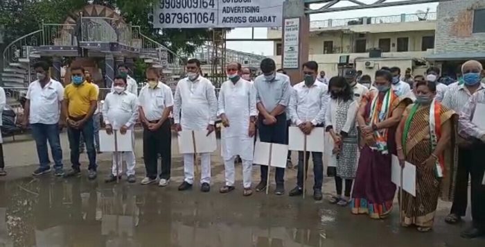 આજે જીલ્લા પ્રમુખ પરિમલ સિંહ રણા, જીલ્લા પ્રવકતા નાઝુ ફડવાળા, વિપક્ષનાં નેતા સમસાદ સૈયદ, હેમેન્દ્ર કોઠીવાલા, સુલેમાન પટેલ, અરવિંદ દોરવાલા, ધૃતાબેન રાવળ, જયોતિબેન તડવી, શહેર કોંગ્રેસ સમિતિનાં પ્રમુખ વિકી શોખી, મગન પટેલ, સુરેશ પરમાર, ઇબ્રાહિમભાઈ કલકલ, રાધે પટેલ, સહિતનાં આગેવાનોએ આજે પેટ્રોલ-ડીઝલનાં ભાવ વધારા સામે પ્લેકાર્ડ થકી વિરોધ નોંધાવ્યો હતો. જ્યારે આજે ચીન ભારત સરહદે ધર્ષણમાં 20 ભારતીય જવાન શહીદ થતાં તેઓને બે મિનિટનું મૌન પાળી શ્રદ્ધા સુમન અર્પણ કર્યું હતું. આ પ્રસંગે જીલ્લા પ્રમુખ પરિમલ સિંહ રણાએ જણાવ્યુ હતું કે આજે ચીની સૈનિકોનાં હુમલામાં ભારતીય સૈનિકોનાં મોત થયા છે. તેમને શ્રદ્ધા સુમન અર્પણ કરવામાં આવ્યા છે. તેમના પરિવાર પર આવી પડેલી આફતને સહન કરવાની પ્રભુ શક્તિ આપે તેવી પ્રાર્થના કરવામાં આવી છે. સાથે દેશમાં સરકારે પેટ્રોલ-ડીઝલનાં ભાવમાં વધારો કરીને આવી મહામારી વખતે લોકોની કમર તોડી નાંખવાનું કૃત્ય કર્યું છે. ગરીબો અને મધ્યમ વર્ગીય પરિવારો માટે વધુ મુશ્કેલી ઊભી કરી છે તેનો વિરોધ કરીએ છીએ.